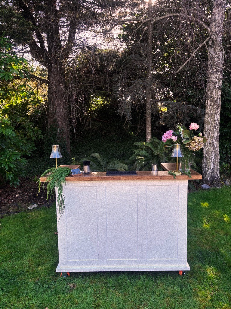 She emulates a clean, timeless design with warm wood accents and a soft, neutral finish. Simple, elegant, and designed to complement any event style.